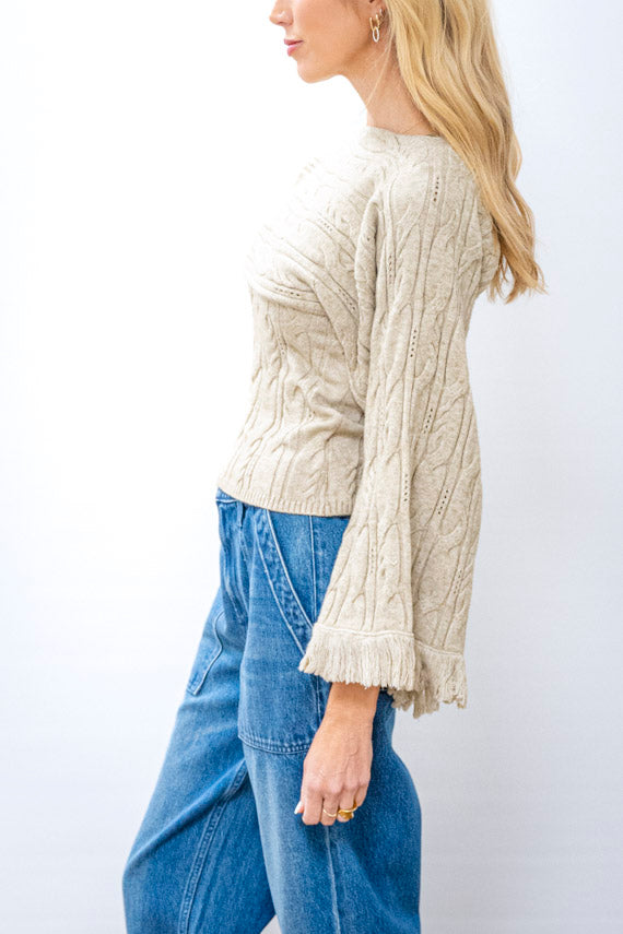 The CURRENT AIR Boatneck Sweater features an innovative design that doubles as both a standalone piece and a layering essential. Crafted from soft blended materials in a medium weight, this sweater showcases distinctive fringed sleeves that add movement and visual interest. The boatneck silhouette pairs beautifully with the included scarf-style long sleeves, giving you multiple styling options in one versatile piece. Perfect for creating dimension in your outfits while staying cozy and comfortable.