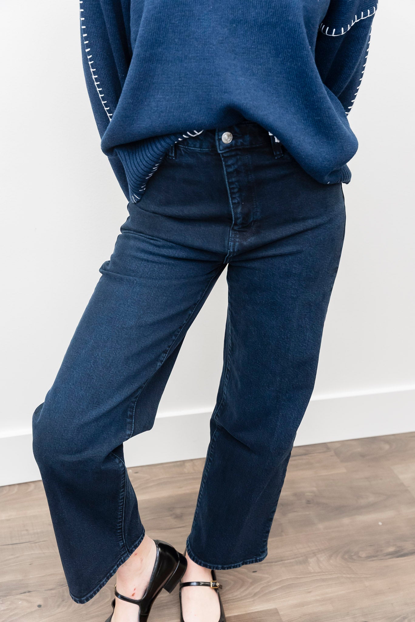 Discover effortless style with FRAME The Wide Untold Jeans. Crafted from a soft blend of premium materials, these high-rise jeans feature a flattering wide-leg cut and a rich dark wash. Designed for comfort and versatility, they include practical pockets for everyday convenience. Elevate your wardrobe with denim that moves with you and makes a confident statement wherever you go.