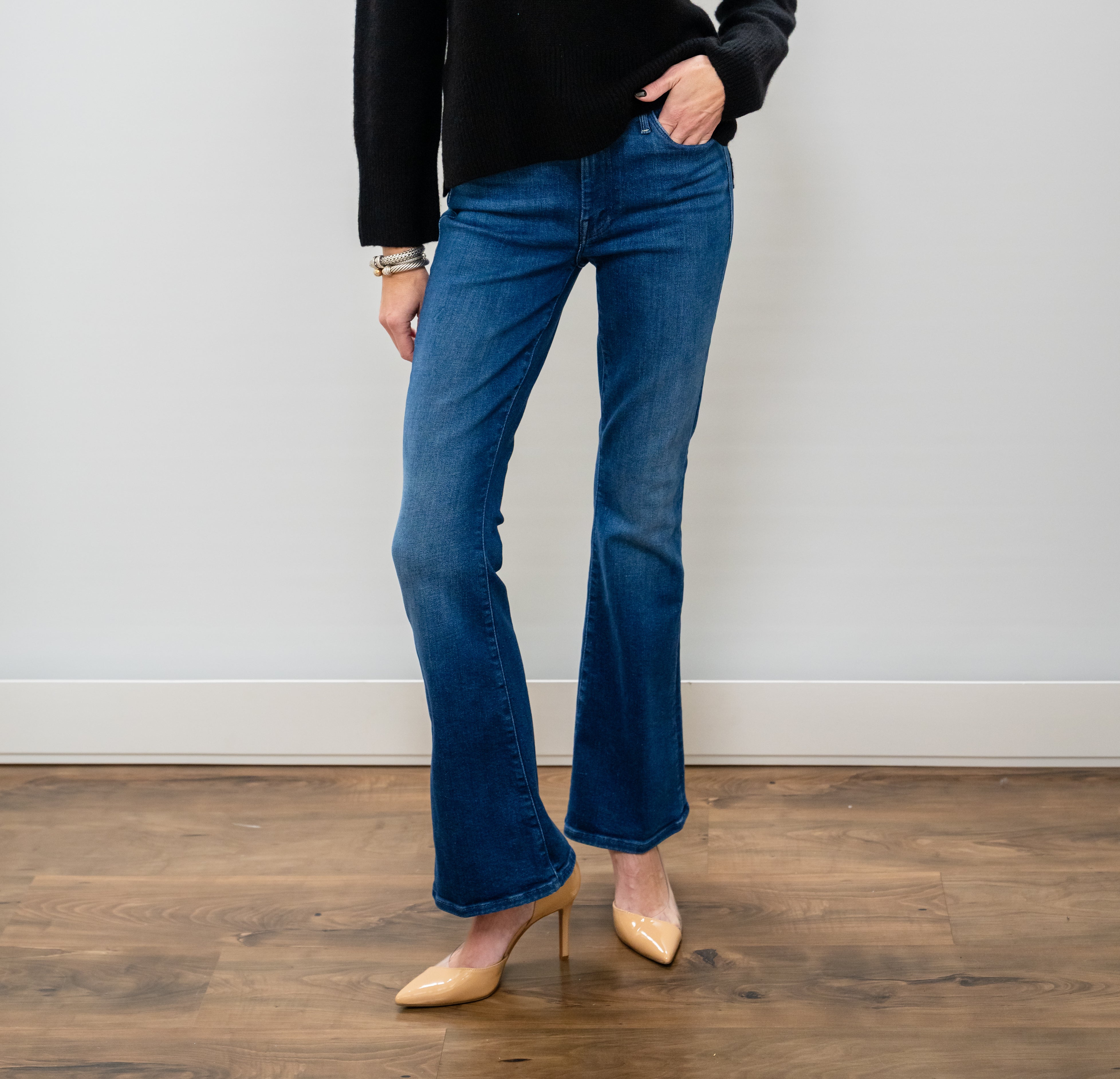 MOTHER The Weekender IPB Jeans deliver effortless sophistication with a flattering high-rise silhouette and skinnier fit that hugs your curves in all the right places. The bootcut leg creates a polished line from hip to heel, while the darker wash adds versatility and depth to your wardrobe. Crafted from quality blended materials, these jeans offer durability and comfort that lasts. Functional pockets keep your essentials within reach without compromising style. Whether you're heading to brunch or a night out, The Weekender is the go-to pair that works as hard as you do.