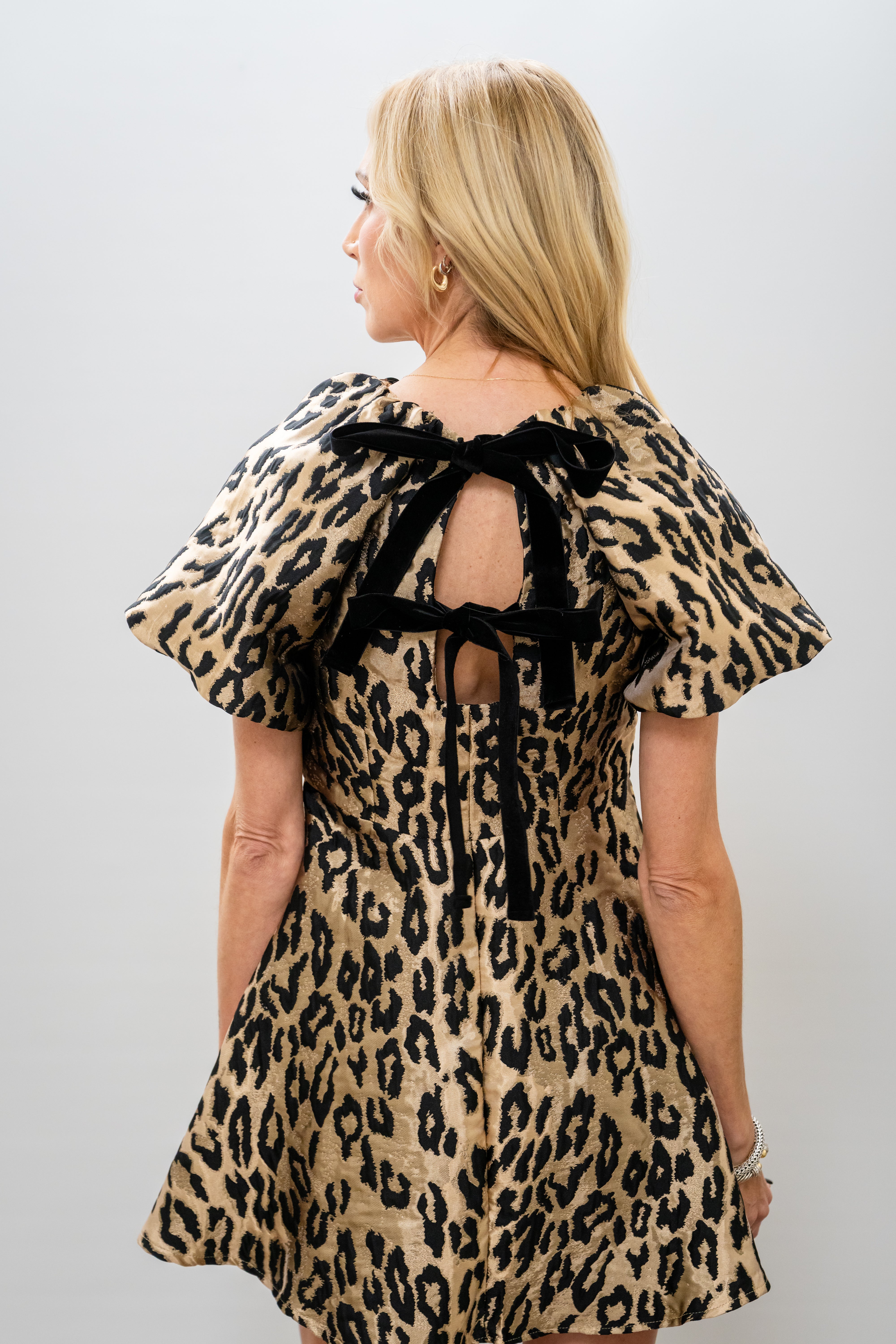 Make a bold statement with the THML Leopard Puff Sleeve Mini Dress, where timeless animal print meets contemporary style. Constructed from 100% polyester for easy care and lasting durability, this dress showcases romantic puff sleeves that frame the shoulders beautifully. The classic round neckline pairs perfectly with a flattering A-line skirt that skims the body for comfort and movement. Dual ties at the back allow you to adjust the fit to your preference, creating a personalized silhouette. The striking leopard print ensures you'll turn heads wherever you go—ideal for date nights, parties, or any occasion calling for confident, fashion-forward flair.