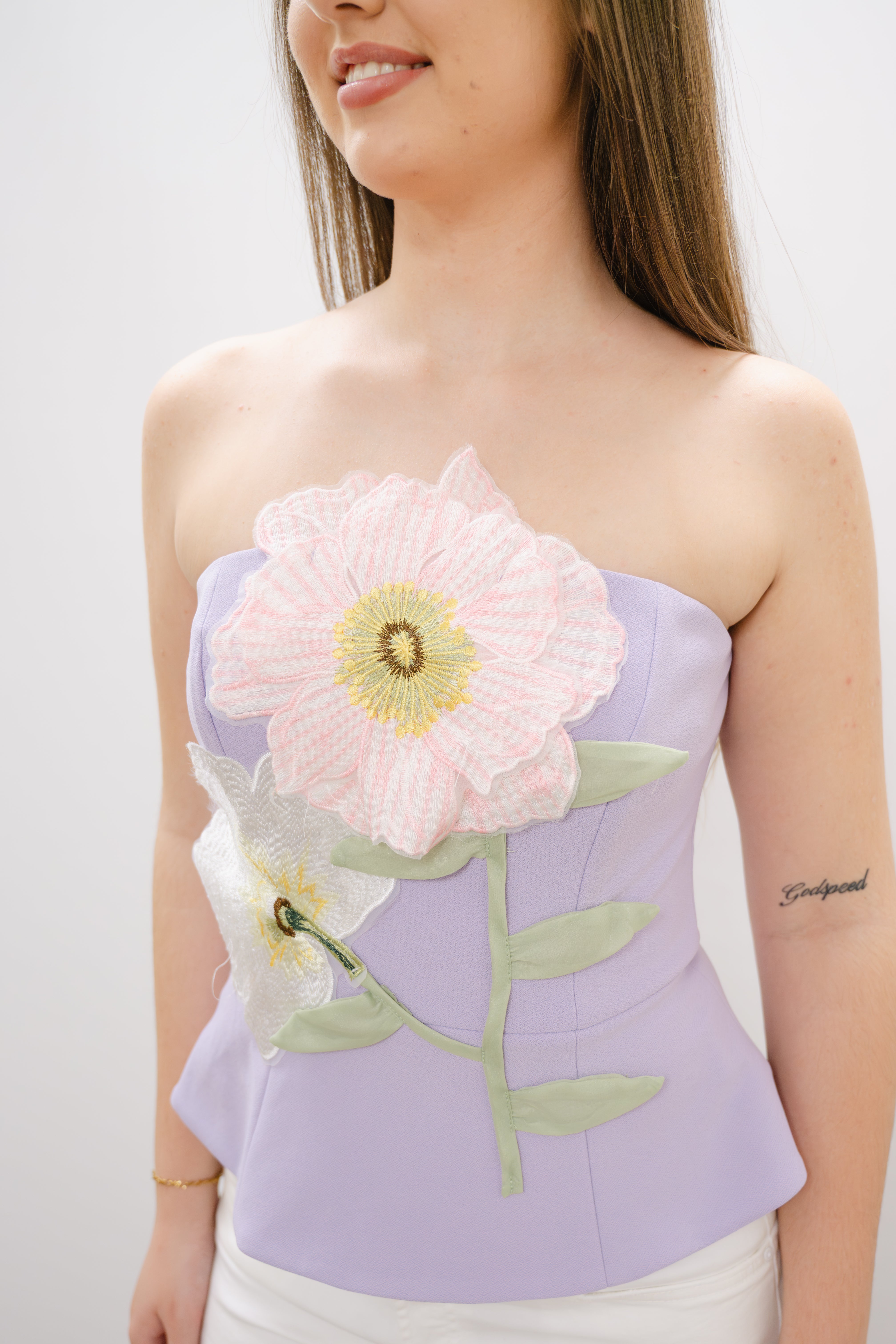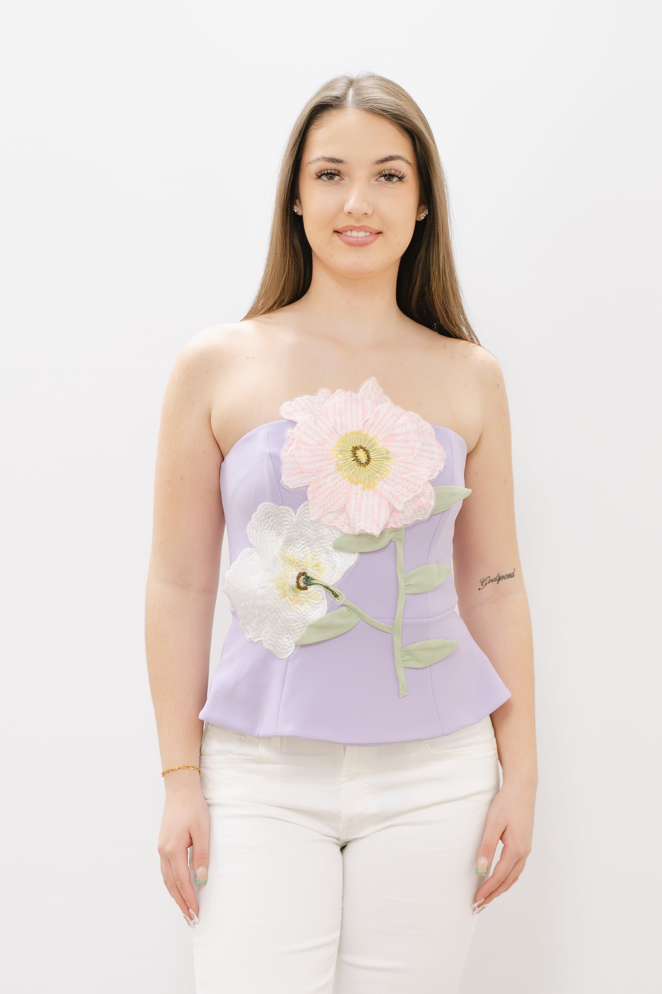The ELLIATT Hope Top is a sophisticated sleeveless design crafted from blended materials for comfort and durability. This strapless piece features an elegant flower decal that adds a feminine touch. The double-lined construction ensures a smooth, flattering silhouette, while the discreet back zipper provides easy on-and-off convenience. Perfect for layering or wearing solo, this versatile top transitions effortlessly from day to evening.