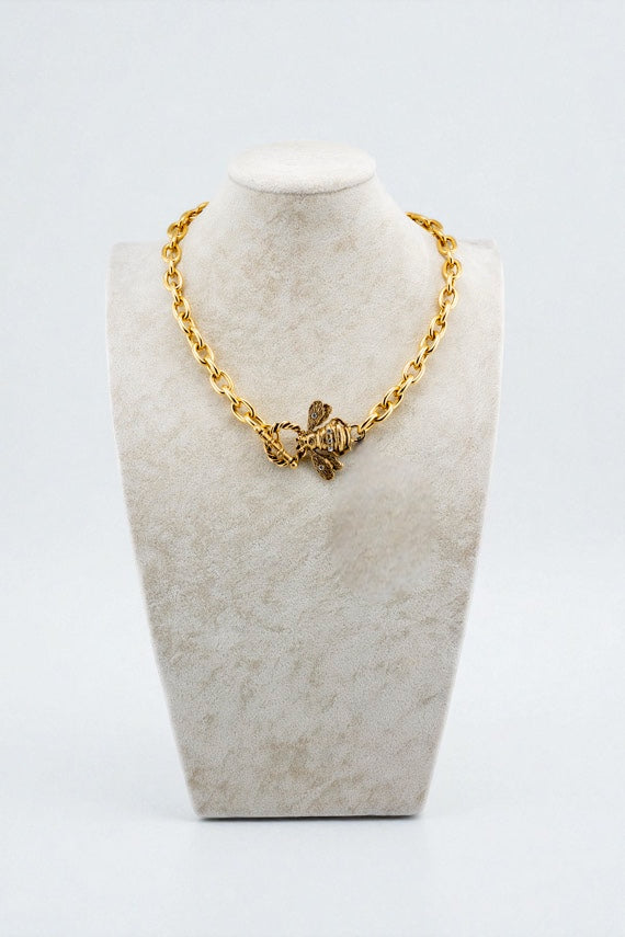 Elevate your everyday elegance with this exquisite gold chain necklace, featuring a delicate bee pendant adorned with shimmering gemstones. The secure toggle clasp ensures your precious piece stays perfectly in place, while the dainty design makes it versatile enough to layer or wear solo. A timeless symbol of grace and nature's beauty, this necklace transforms any outfit into something truly special.