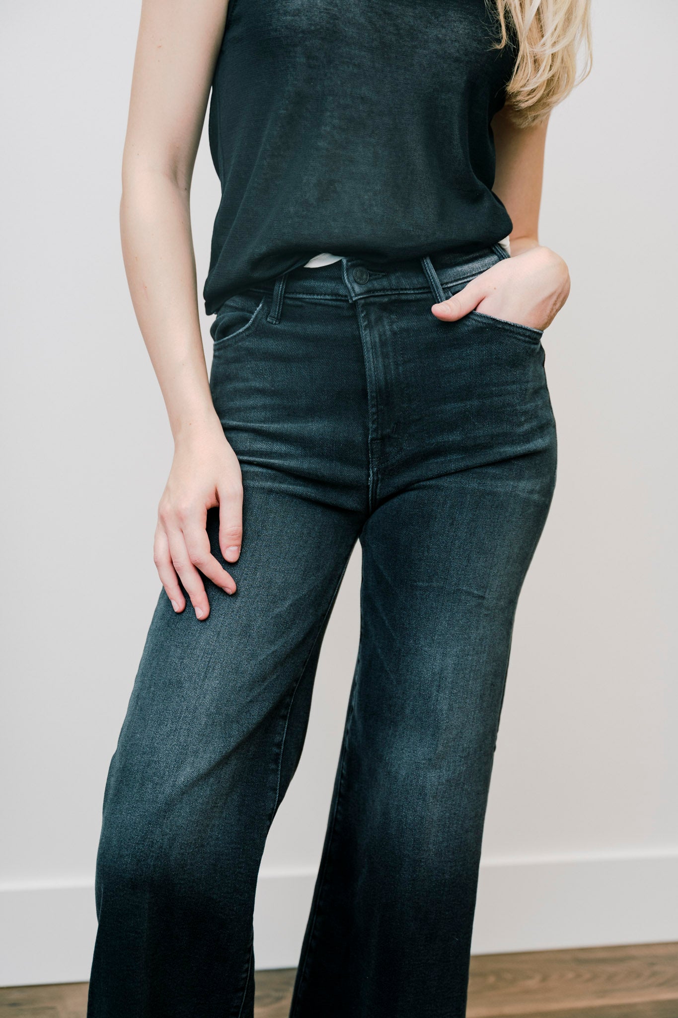 The MOTHER Lil Hustler Roller Sneak Jeans offer the perfect blend of style and function with their black washed finish and medium-weight fabric. Featuring both zipper and button closures for secure wear, these jeans also include deep pockets to keep essentials close at hand. Crafted from blended materials, they provide comfort and durability for your everyday hustle.