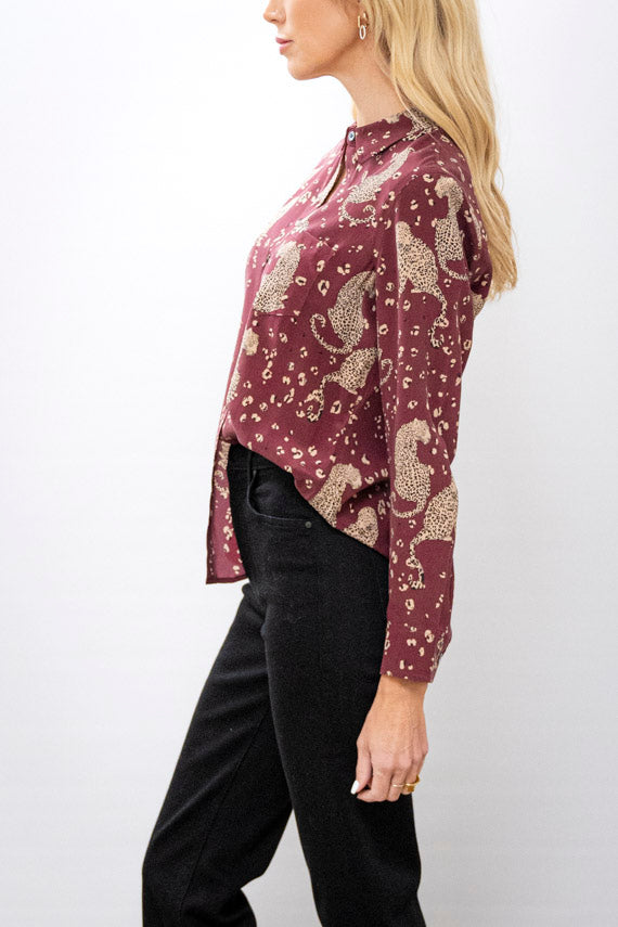 Elevate your wardrobe with the RAILS Kate Leopard Top, crafted from luxurious 100% silk that feels as good as it looks. The classic collared design and button front create a polished silhouette, while the bold leopard print adds an instant edge to any outfit. Long sleeves provide versatile coverage, and the lightweight fabric keeps you comfortable all day long. Dress it up or down—this statement piece is your go-to for effortless sophistication.