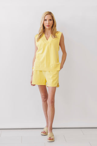 Laze around in these PEOPLE OF LEISURE Lazy Day Shorts! The vibrant yellow hue is perfect for sunny days, while the elastic waist ensures a comfortable fit. With a cozy terrycloth interior, these shorts are perfect for lounging or casual outings.
