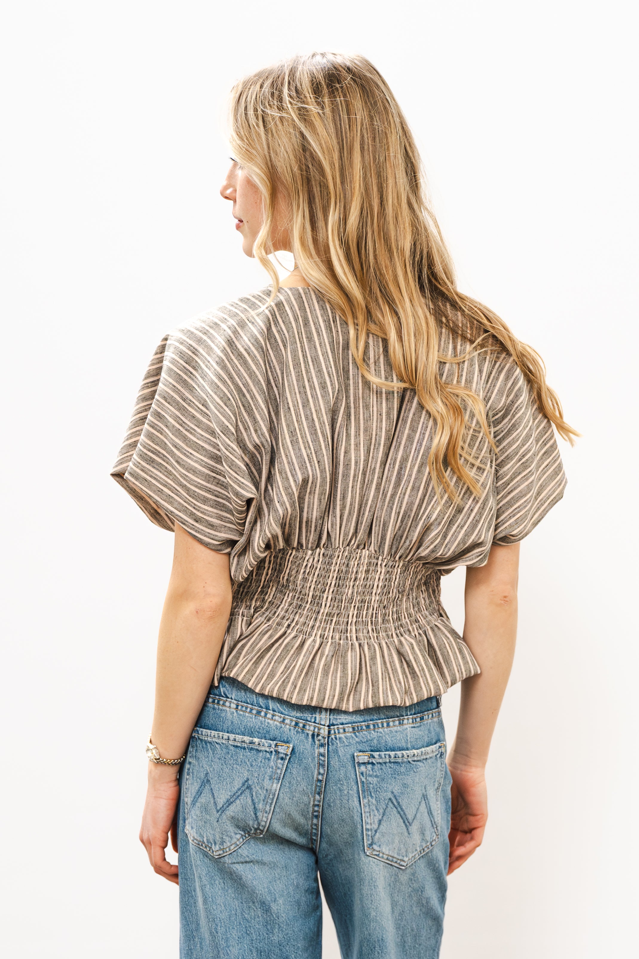 Elevate your wardrobe with the A.REN Isla Shirred Peplum Top, a versatile piece designed for effortless style. Crafted from 100% polyester, this lightweight top features a flattering V-neckline and playful ruffled details that add movement and dimension. The short sleeves and breathable fabric make it perfect for warm weather, while the shirred peplum silhouette creates a polished, feminine look. Whether you're dressing up for brunch or keeping it casual, this top transitions seamlessly from day to night. Comfortable, chic, and endlessly wearable.