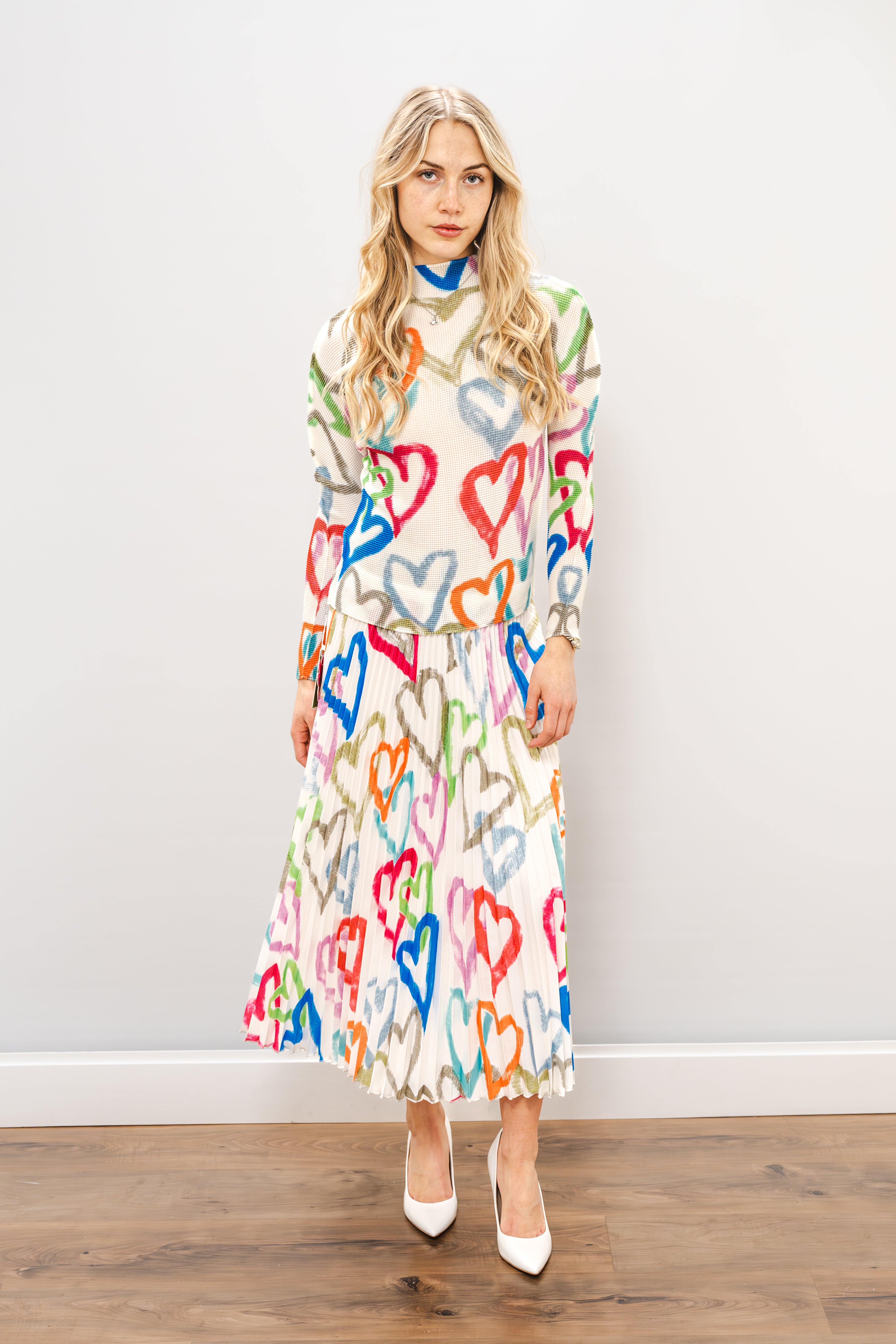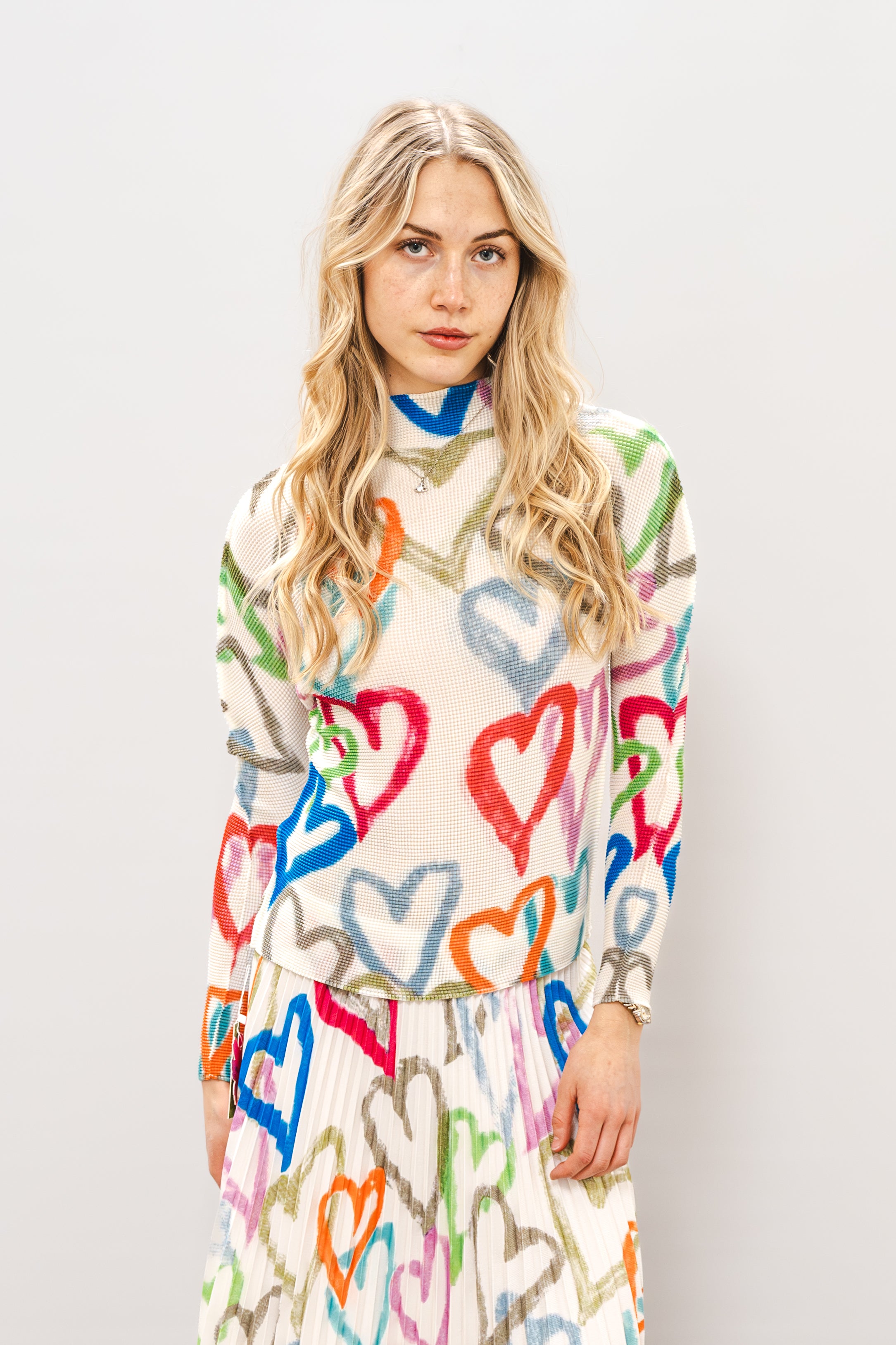 Discover the perfect canvas for your style with this charming long-sleeve top. Crafted from 100% polyester, it offers comfort and easy maintenance for everyday wear. The one-size fit welcomes all body types, making it an inclusive addition to your closet. Designed to complement the WILD COSMOS Ava Hearts White Mix Skirt, this top creates a cohesive, fashion-forward ensemble—or wear it solo layered over your favorite pieces. Versatile, comfortable, and effortlessly chic, it's the foundational piece every wardrobe deserves.