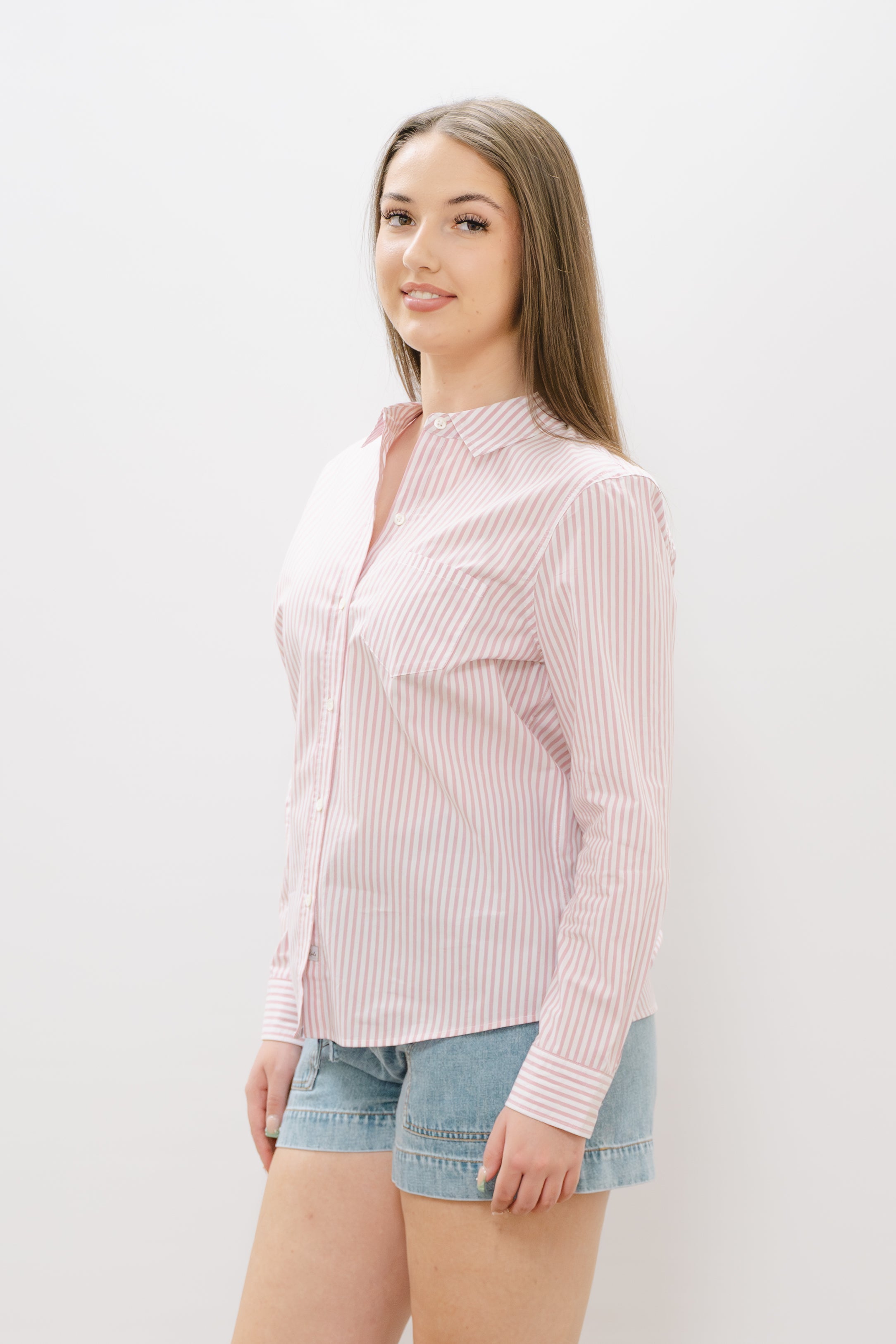 The RAILS Stinna Button Up is a timeless wardrobe essential crafted from 100% cotton. This lightweight long-sleeve shirt features classic vertical stripes and a structured collar, perfect for layering or wearing solo. The button-up front and functional pocket add practical style to your everyday rotation. Breathable and versatile, it transitions effortlessly from casual weekends to relaxed office settings.