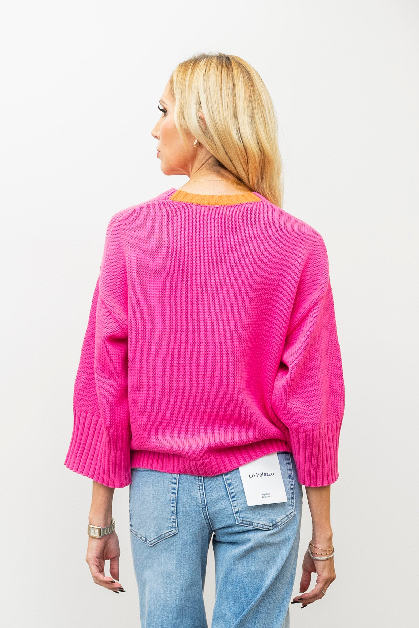 Crafted from 100% cotton, the ZAKET & PLOVER Wide Sleeve Crewneck Sweater offers breathable comfort with a soft, knitted texture. Its relaxed wide sleeves and round neckline provide effortless style, while the distinctive orange neck detail adds a vibrant touch to your wardrobe. Finished with rib-cuffed edges for a polished look, this sweater combines modern design with cozy wearability, making it an ideal choice for both casual outings and comfortable layering.