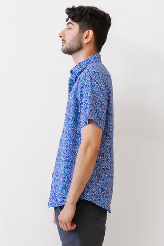 Untuckit Preformace Short Sleeve Shirt in Hicks Blue Floral Print