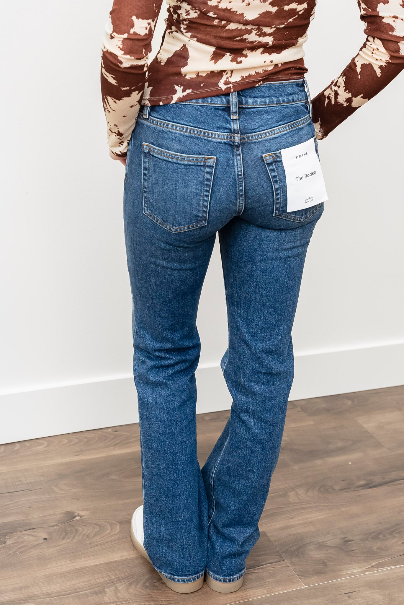 Step into classic style with FRAME The Rodeo Jeans. Crafted from a comfortable blend of materials, these mid-rise jeans feature a timeless straight-leg cut and a versatile medium blue wash. Equipped with practical pockets and a secure button-and-zipper closure, they offer both function and effortless style for your everyday wardrobe.