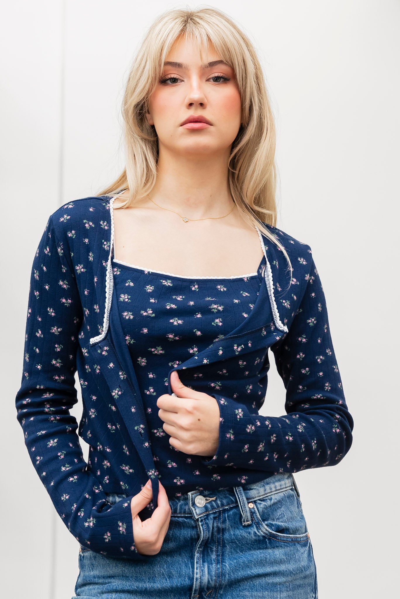 Experience effortless style with the ROSIE POSIE Floral Knit Cardi/Tank set. Crafted from 100% soft cotton, this versatile duo features a button-front cardigan paired with a matching spaghetti strap tank. The tank’s round neckline is elegantly accented with delicate lace, adding a feminine touch. Perfect for layering, you can wear the cardigan or remove it to suit your mood and the weather. Comfortable and breathable, this set effortlessly blends cozy warmth with stylish charm for any occasion.