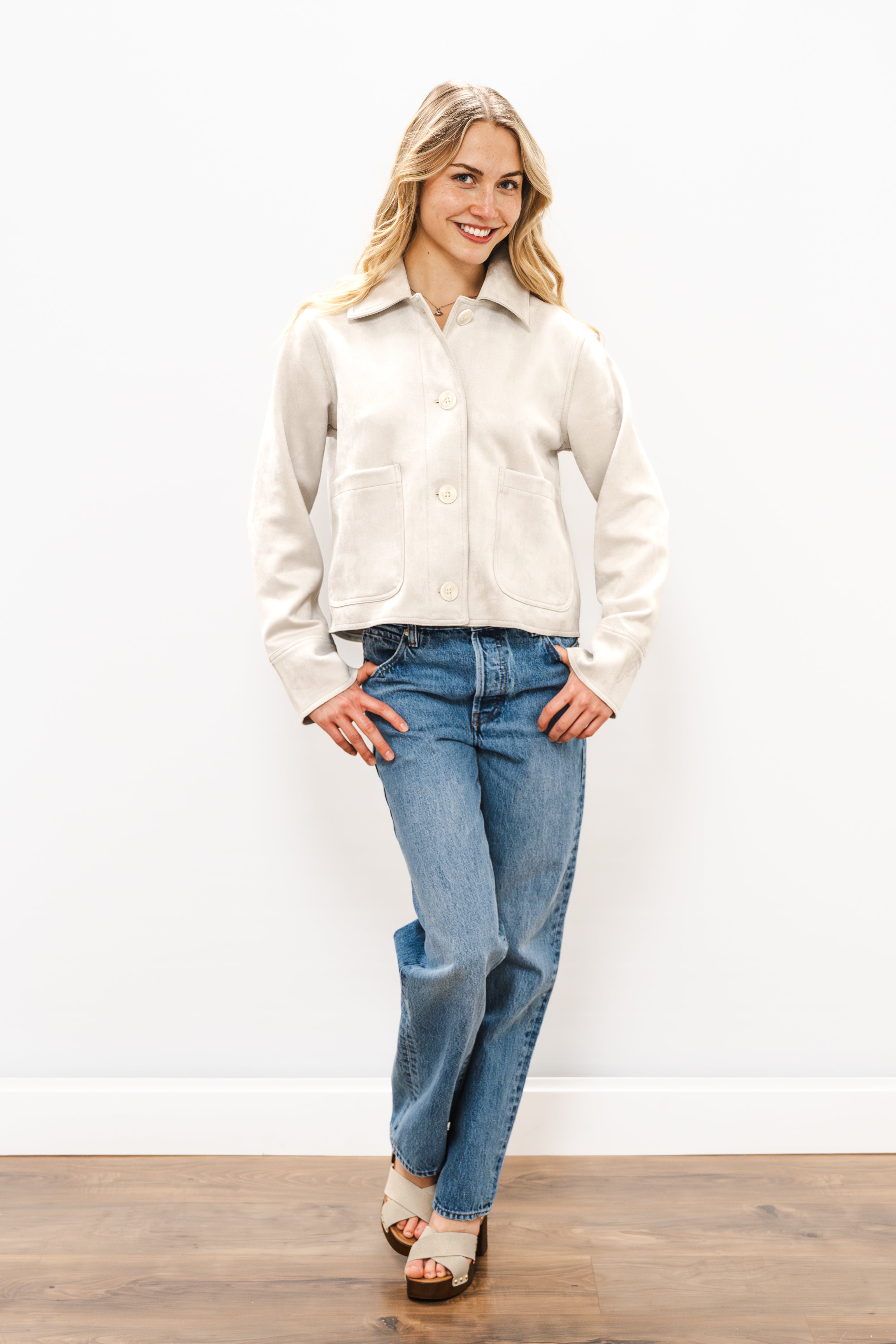 Elevate your everyday wardrobe with the Z SUPPLY Dillon Suede Jacket—a timeless piece that combines sophistication with practicality. Featuring a classic collar, button-front closure, and long sleeves, this jacket is crafted from premium blended materials for a luxurious feel and lasting durability. Functional pockets add convenience while the refined silhouette layers beautifully over any outfit. An investment piece that anchors your style for seasons to come.