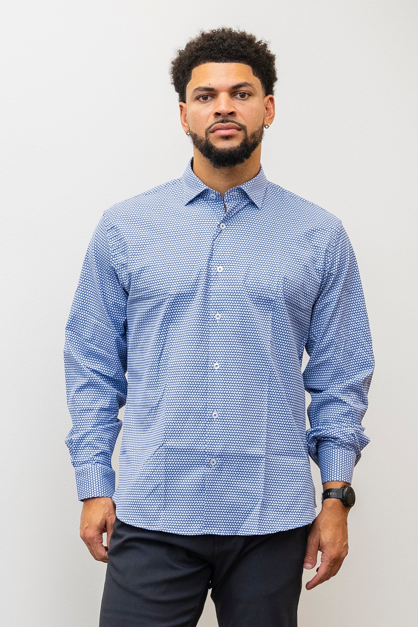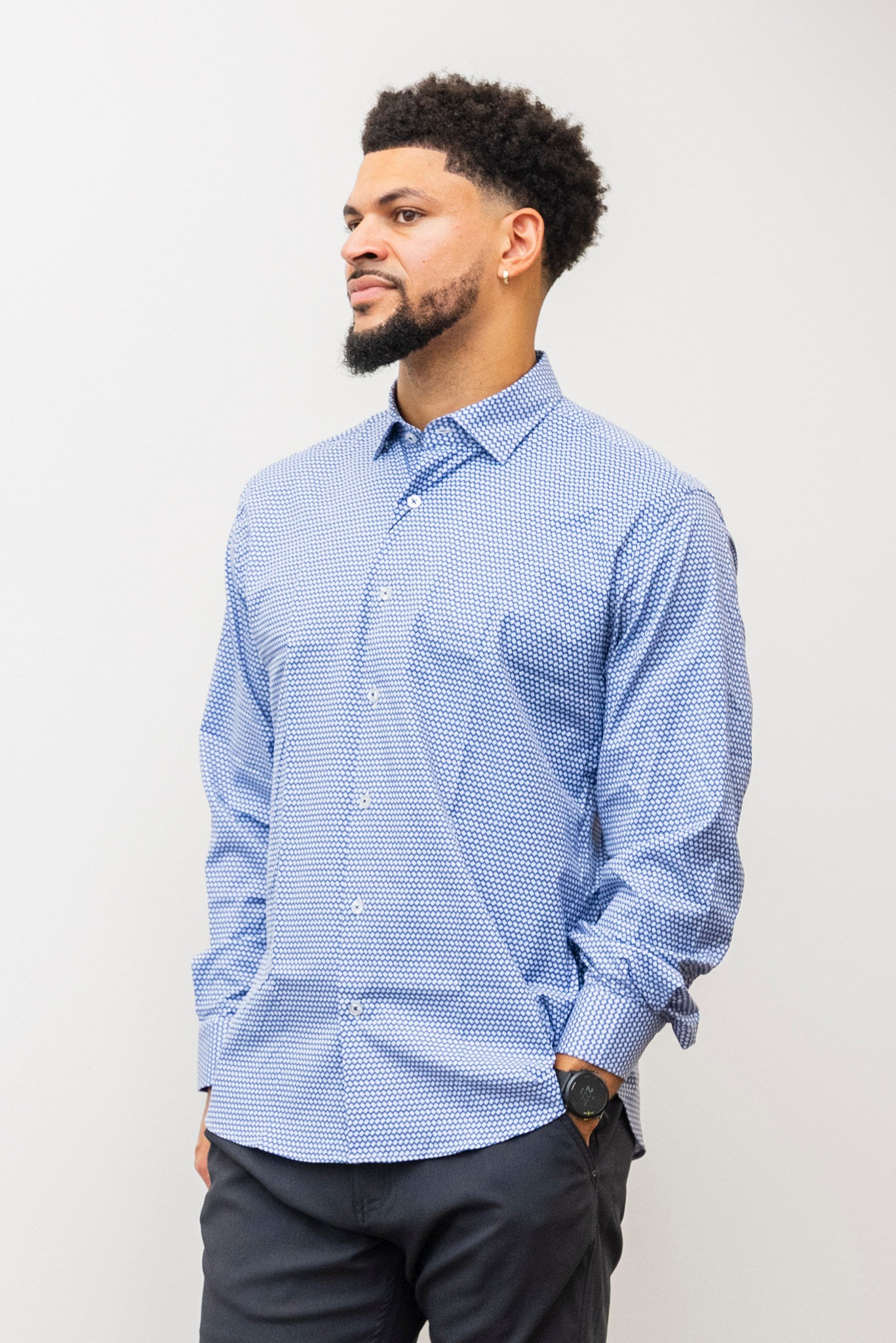 Elevate your wardrobe with the MIZUMI Navy Button Up, crafted from a blend of lightweight materials for all-day comfort. Featuring a classic collared design and button-front closure, it offers effortless style and versatility. The subtle pattern adds a touch of sophistication, making it perfect for both casual and smart occasions. Stay cool and confident in this essential piece designed to complement any look.