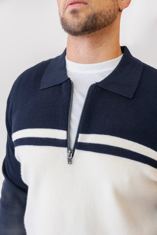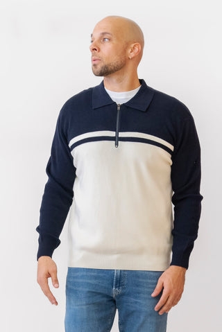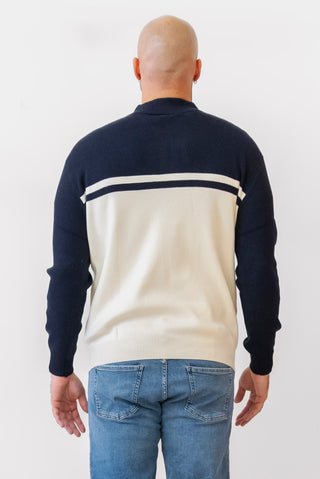 Stay stylish and cozy with our MIND Block Half Zip Sweater. Featuring a navy and ivory color palette, this sweater is both versatile and on-trend. The convenient half zip design adds a touch of functionality, while the soft material ensures comfort all day long. Upgrade your wardrobe with this must-have piece.