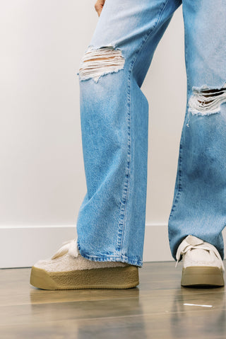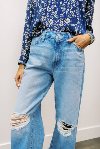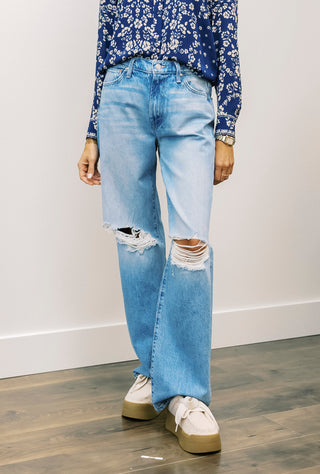 Crafted from 100% cotton, the MOTHER Dodger Sneak Ripped Jeans combine comfort and edge. Featuring ripped knees and a relaxed wide-leg fit, they offer effortless style and freedom of movement. Deep front and back pockets provide practical storage while enhancing the laid-back vibe. Perfect for those who value both fashion and function.